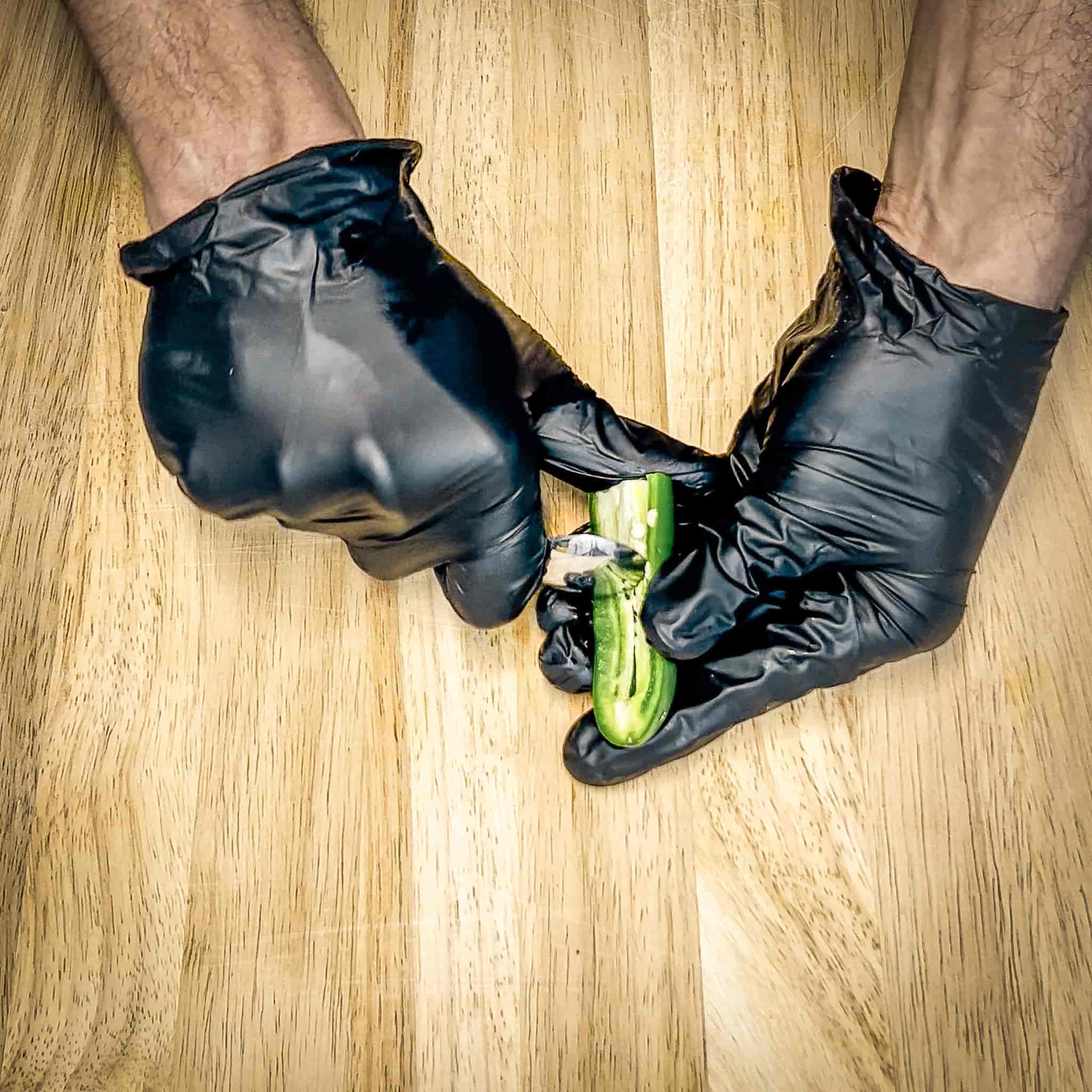 After washing, cut the jalapeño stems and slice lengthwise down the center. Using a spoon, scrape the inside of the peppers, including the seeds and membrane, until mostly clean. Leave some of the seeds or membrane if you prefer more heat. Cover and set aside in a bowl.